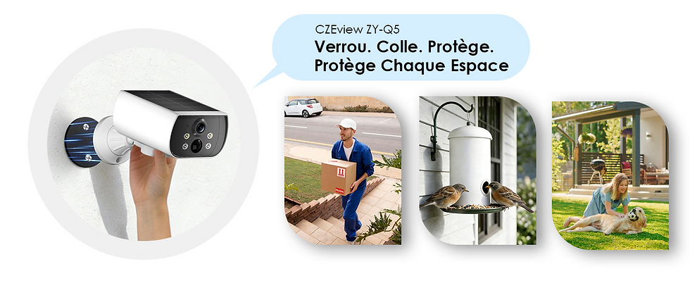 100 % sans Fil et Alimenté Par l'énergie Solaire - La caméra CZEview Q5 2,4 GHz avec batterie rechargeable ne nécessite pas de prise de courant ; le panneau solaire intégré assure une alimentation continue