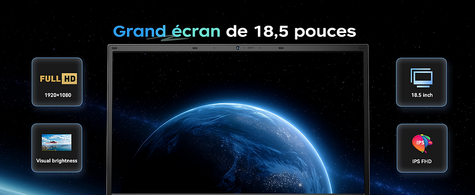 Le PC Portable Tivique AX18 Écran 18.5"FHD 60Hz CPU 4 Couers 13ème Intel N150 3,60GHz 16Go RAM+512Go SSD M.2 Wi-FI Dual-Band, BT5.2 USB 3.2 HDMI Type-C Batterie 8000mAh 40W Webcam 1M dual HP