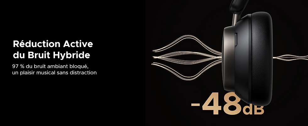 [ ANC Réduction Active du Bruit Adaptative ] Ce casque bluetooth sport est équipé d'une technologie de réduction active du bruit adaptative (ANC) qui s'adapte intelligemment à votre environnement, avec une réduction du bruit jusqu'à -48 dB. La puce haute qualité peut capter le bruit ambiant 375 000 fois par seconde et ajuster automatiquement le niveau de réduction du bruit, pour une écoute toujours claire, que vous soyez en avion, en train ou au bureau.